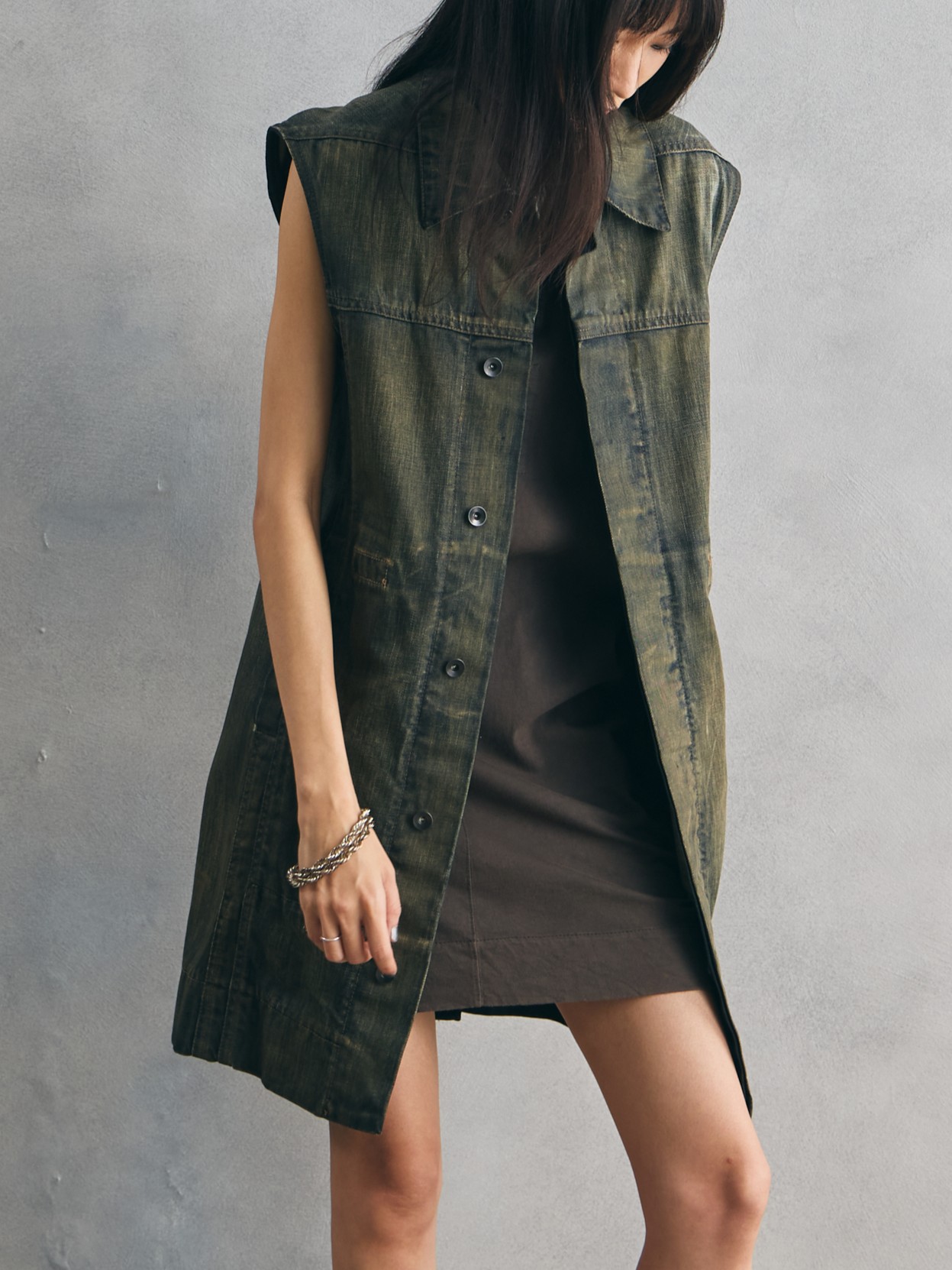 Rick Owens DRKSHDW Waxed Denim Long Vest